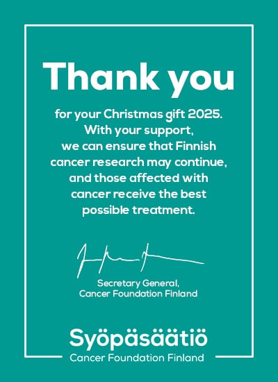 Syöpäsäätiön joulukeräys yrityslahjoittajille