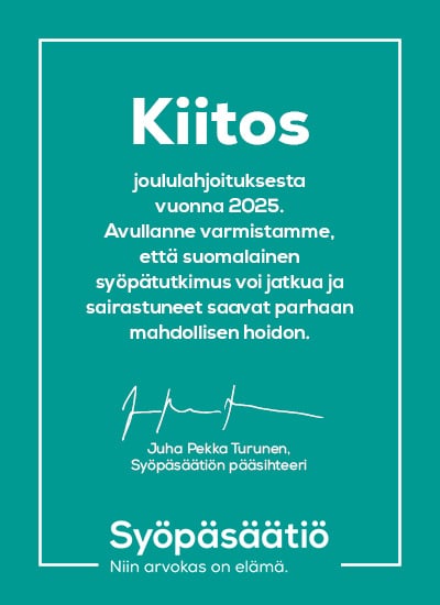 Kiitos Syöpäsäätiön lahjoittajille