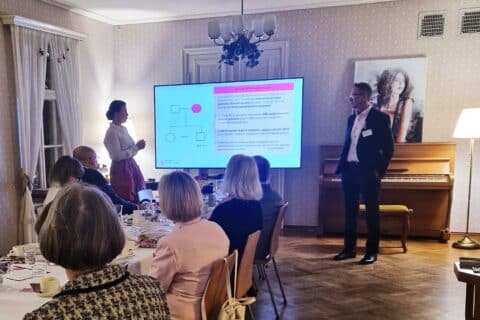 Lokakuisen sunnuntain iltapäivässä hirsihuvila Bokvillan tarjosi kauniit puitteet Syöpäsäätiön tukijoille syöpätutkijoiden ja asiantuntijoiden tapaamiseen.